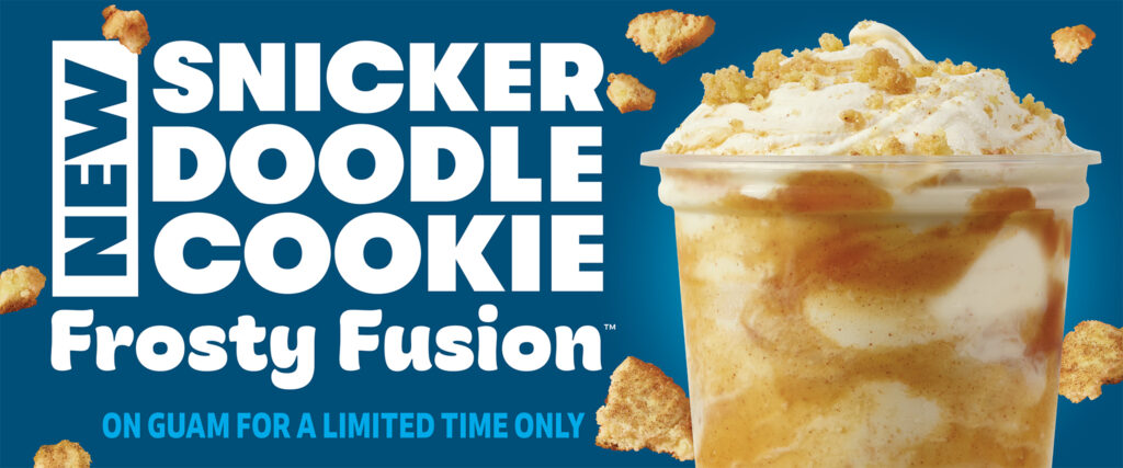 Unwrap THE gift on everyone’s list… The NEW Sugar Cookie Frosty Fusion™ — Frosty® blended with snickerdoodle sauce and crumbled snickerdoodle cookies. So good, you won’t even need a gift receipt. Available at participating Wendy’s® Guam. For a limited time only.